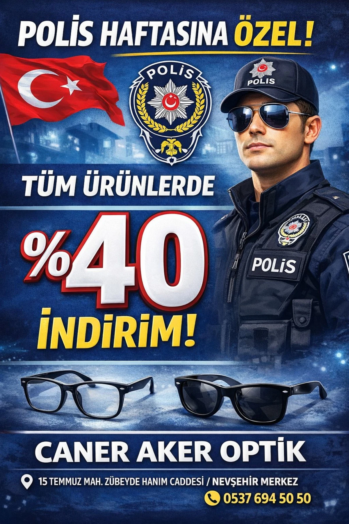 Türk Polis Teşkilatı’nın kuruluş yıl dönümü ve Polis Haftası kapsamında, Nevşehir’in önde gelen optik mağazalarından Caner Aker Optik, emniyet mensuplarına özel dev bir kampanya başlattı.