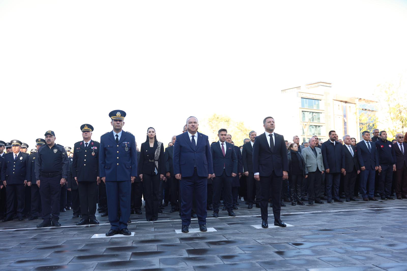 Nevşehir Valisi Ali Fidan, Garnizon Komutanı Albay Nedim Bildik ve Belediye Başkanı Rasim Arı tarafından Atatürk Anıtına çelenk sunumun ardından Mustafa Kemal Atatürk’ün ebediyete irtihal ettiği saat olan 09.05’te çalan siren eşliğinde iki dakikalık saygı duruşunda bulunuldu.