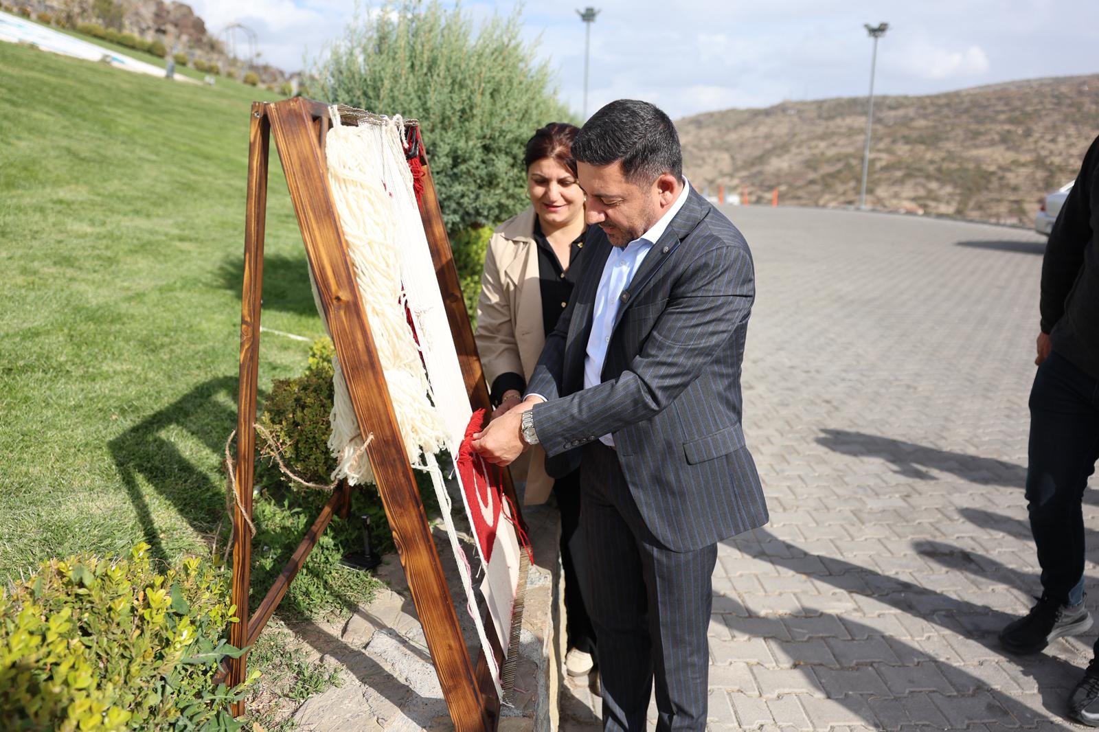 29 Ekim Cumhuriyet Bayramı dolayısıyla yürütülen “İlmek İlmek Türkiye” projesi kapsamında, 1001 ilmekten oluşan Şanlı Türk Bayrağı dokuması Nevşehir Belediye Başkanı Rasim Arı’nın son ilmeği atmasıyla tamamlandı.