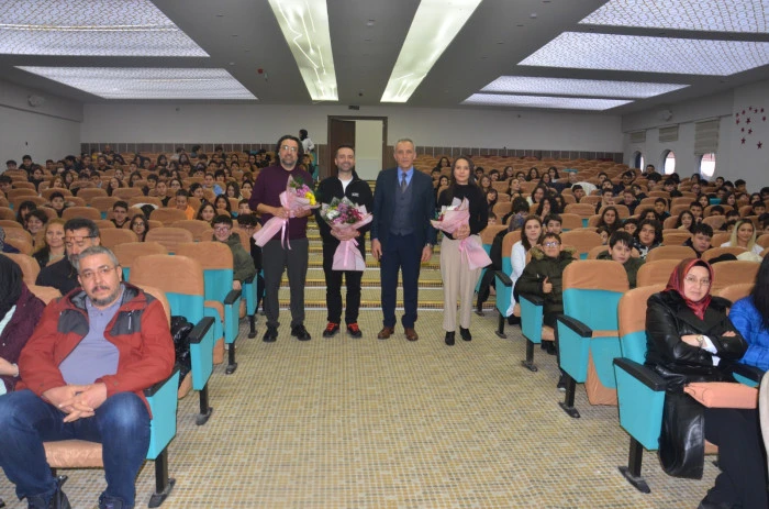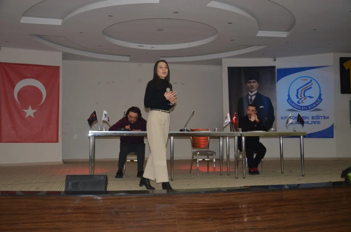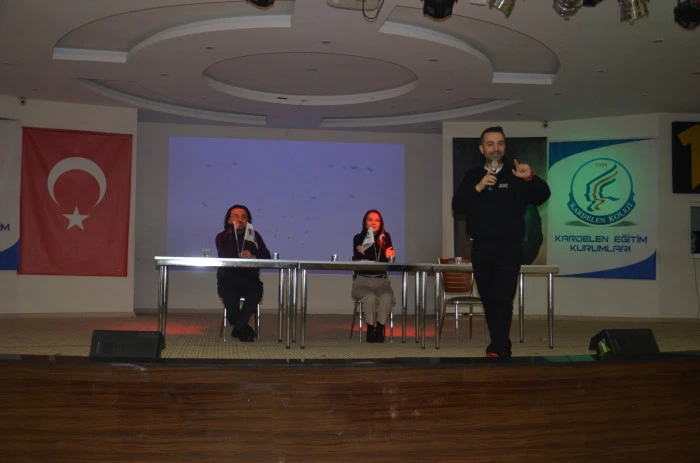 Kardelen Eğitim Kurumları konferans salonunda düzenlenen ve velilerin de katıldığı seminerde matematik yazarı Serkan Kebenç, eğitim koçu Osman Sarı ve fen bilimleri yazarı Merve Er Aslan öğrencilerle buluştu.