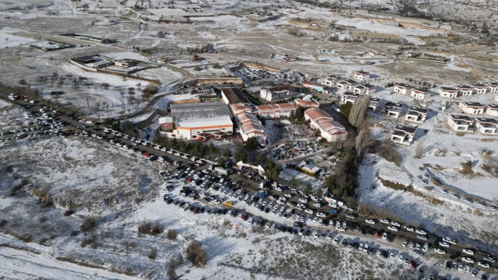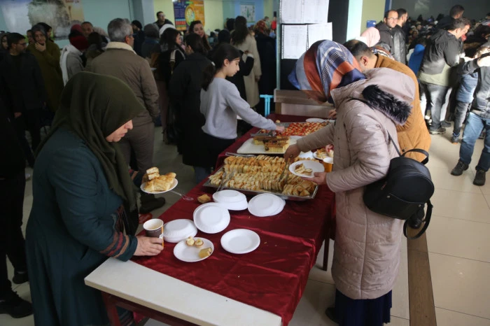 Öğrenciler sınav için sınıflara alındıktan sonra veliler de 1000 kişi kapasiteli yemekhanede misafir edildi.