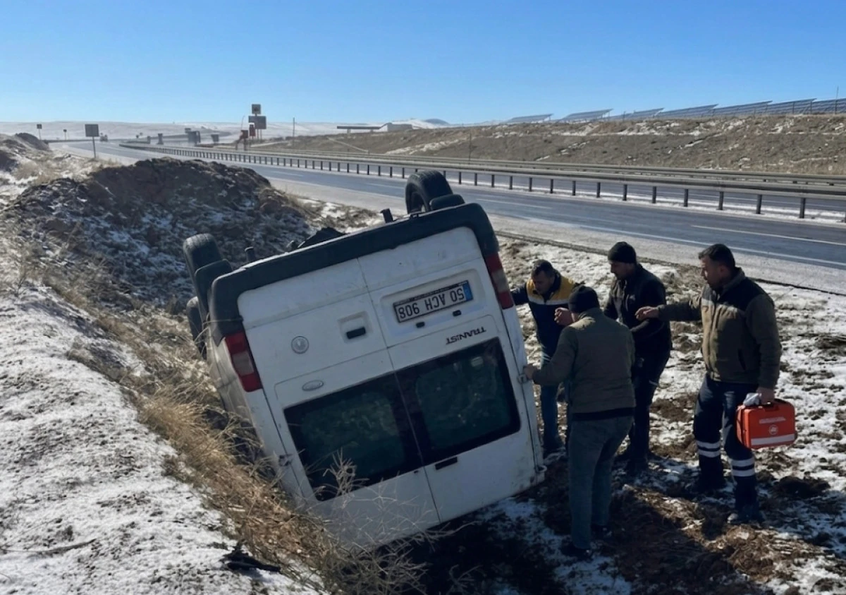 NEVŞEHİR’DE DOLU YAĞIŞI KAZA GETİRDİ: MİNİBÜS ŞARAMPOLE DEVRİLDİ!