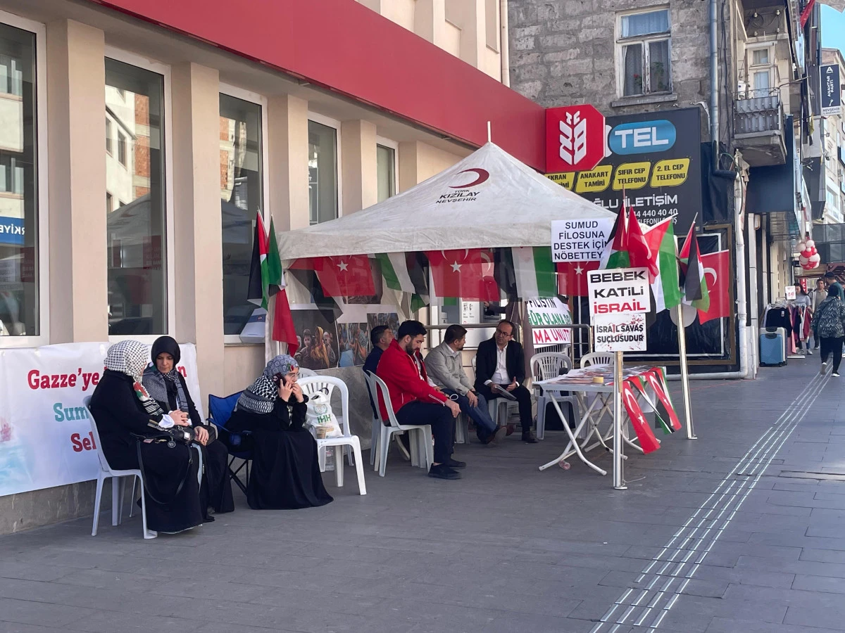 Nevşehir’de, ‘Filistin’le Dayanışma Platformu’na bağlı sivil toplum kuruluşları öncülüğünde, terör devleti İsrail’in Filistin’e yönelik saldırılarına tepki göstermek ve insani yardımların ulaştırılmasına destek vermek amacıyla kent merkezinde destek çadırı kuruldu.