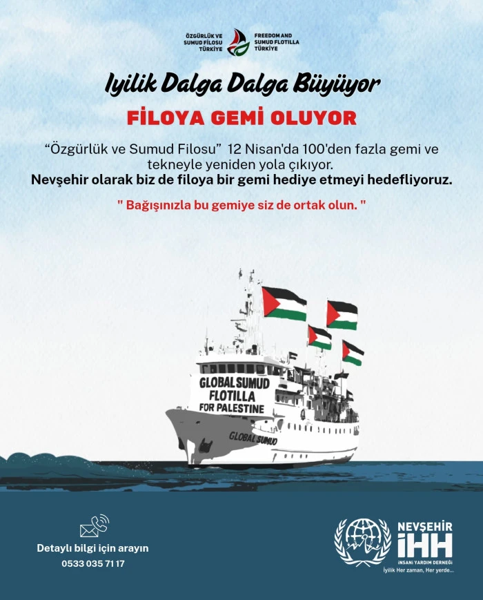 İHH Nevşehir Başkanı Tuncay Sesli, “Katil İsrail’in masum sivillere yönelik baskı, saldırı ve zulmüne karşı bizler kayıtsız kalamazdık. Masum Müslüman kardeşlerimizin yanında olduğumuzu dünyaya ilan etmek aynı zamanda mübarek Ramazan ayında Gazzeli çocuk, yaşlı, kadın tüm sivillerin acılarına merhem olabilmek için çalışmaları sürdürüyoruz. Nevşehir adına yola çıkacak yardım gemisini bir an önce yola çıkarabilmek için çabalıyoruz. Bu sadece bir gemi değil; içinde dayanışma, merhamet ve adaleti taşıyan bir köprü olacak. Her bir bağışınız, bu geminin rotasını güçlendirecek ve mazlumların umudunu tazeleyecektir.” dedi.