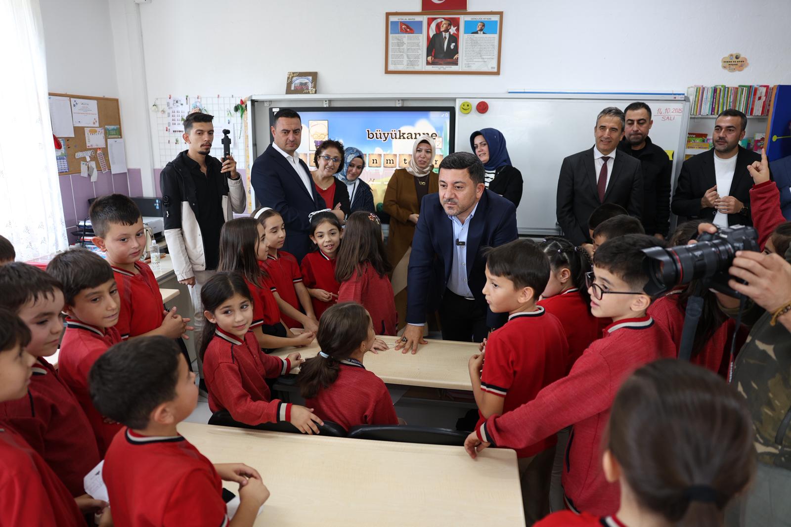 Sınıf başkanlığı seçimini kazanan Eymen Ekinci, verdiği sözü yerine getirmek üzere harekete geçti. Minik Eymen Ekinci’nin davetini geri çevirmeyen Nevşehir Belediye Başkanı Rasim Arı, ilkokula gelerek minik sınıf başkanı Eymen Ekinci’yi tebrik etti. Başkan Arı, okul yönetimi, idareciler, öğretmenler ve öğrencilerle sohbet ederek yürütülen eğitim faaliyetleri hakkında bilgiler aldı ve çocuklara çeşitli hediyeler takdim etti.