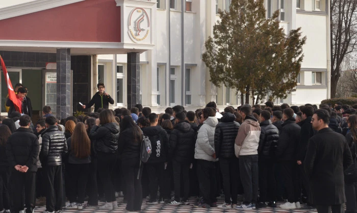 Törenin ardından geçtiğimiz günlerde bayrağımıza yapılan çirkin saldırı nedeniyle öğrenciler hep birlikte “Bayrak” şiirini okud