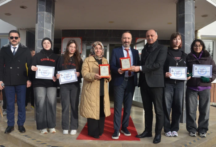 Yarışmada finallere kalan öğrenciler Miray Yaren Yavuz, Ela Haleplioğlu, Süreyya Zorlu ve Selen Ersoy ile danışman öğretmenler Fazilet Çelikten ile Orhan Gündüz’e, Özel Kardelen Fen ve Anadolu Lisesi Müdürü Mürsel Mert başarı belgesi ve plaket verdi.