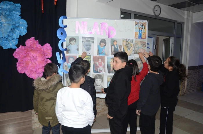 Öğretmenlerin çocukluk fotoğraflarıyla şimdiki fotoğrafları “Bir nesil bir öğretmen” temasıyla etkinlik köşesine asıldı.