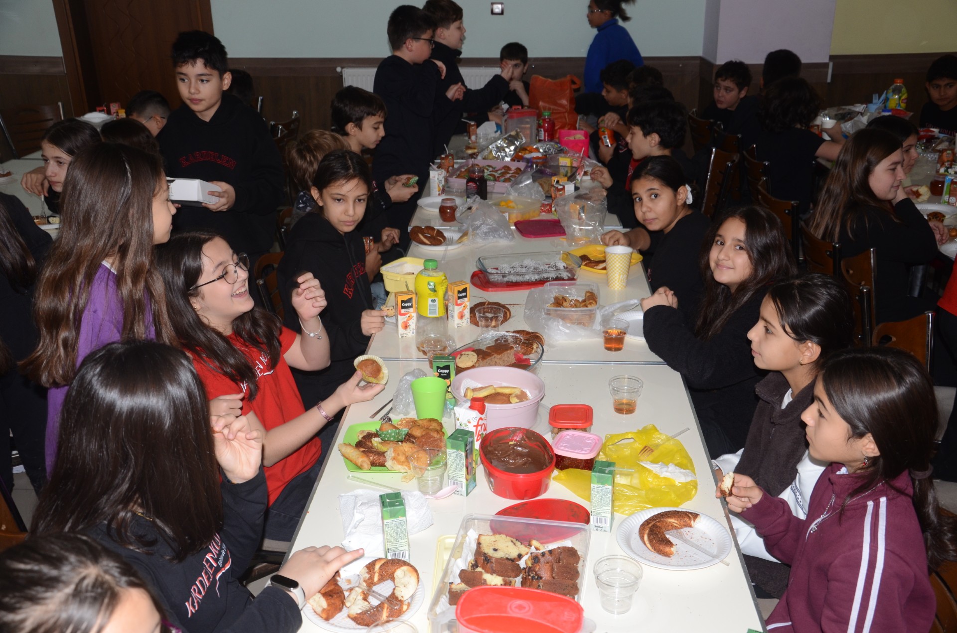 Yiyecekleri evde aileleriyle birlikte hazırlayan öğrenciler yemekhanede buluşarak getirdikleri yiyecekleri hep birlikte yedi.