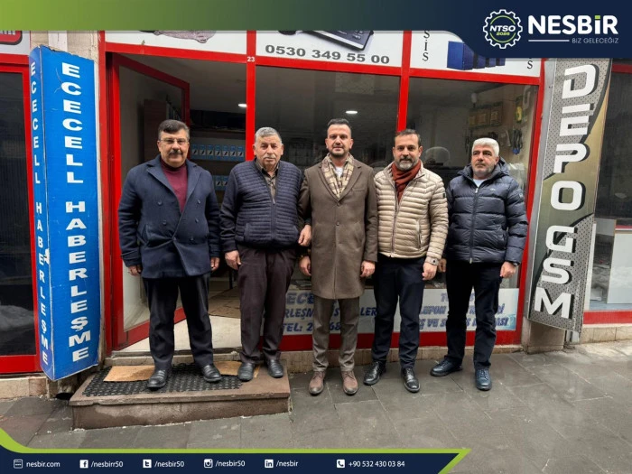 NESBİR Heyeti; Nevşehir Karoserciler, Marangozlar ve Ağaç İşleri Esnaf ve Sanatkârlar Odası Başkanı Ramazan Vedat KORKMAZ, Nevşehir Esnaf ve Sanatkârlar Odası Başkanı Mehmet ERGİN, Nevşehir Kahveciler Esnaf Odası Başkanı Necati DAŞLICA, Nevşehir Pazarcılar Odası Başkanı Selim ÖZMEN ile olağan genel kurulda göreve seçilen Nevşehir Madeni İşler Esnaf ve Sanatkârlar Odası Başkanı Yıldırım ULUCAN ve Nevşehir Elektrik ve Elektronik Esnaf Odası Başkanı Tayfun BALCI’yı ziyaret ederek hayırlı olsun dileklerini iletti.