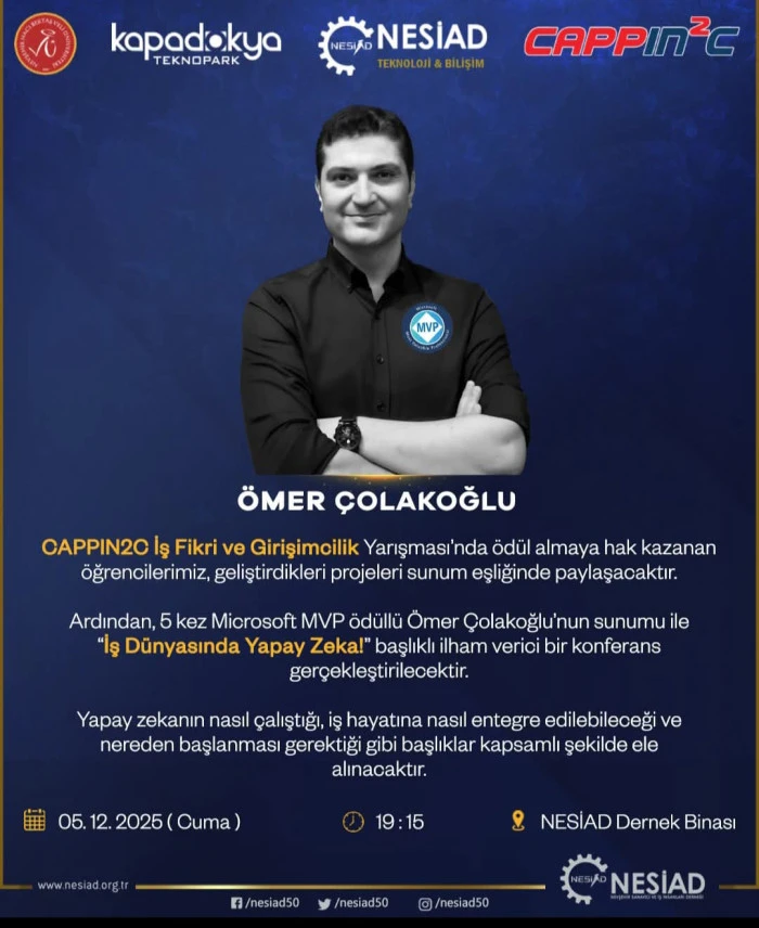NESİAD'dan Gençlere ve Girişimcilere Davet: CAPPIN2O'da Final Heyecanı ve Yapay Zeka Konferansı