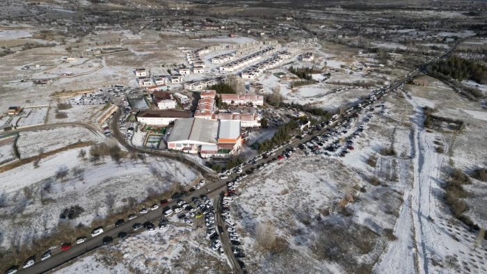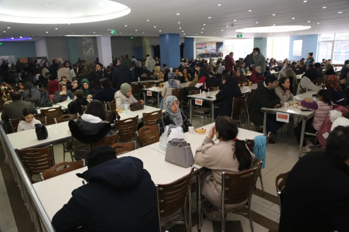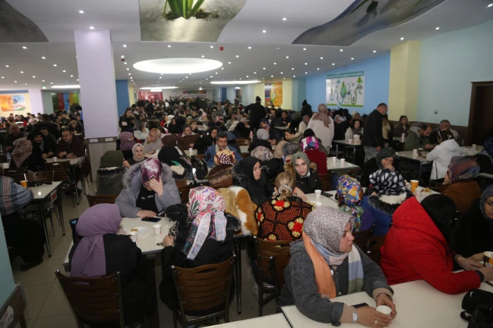Öğrenciler sınav için sınıflara alındıktan sonra veliler de 1000 kişi kapasiteli yemekhanede misafir edildi.