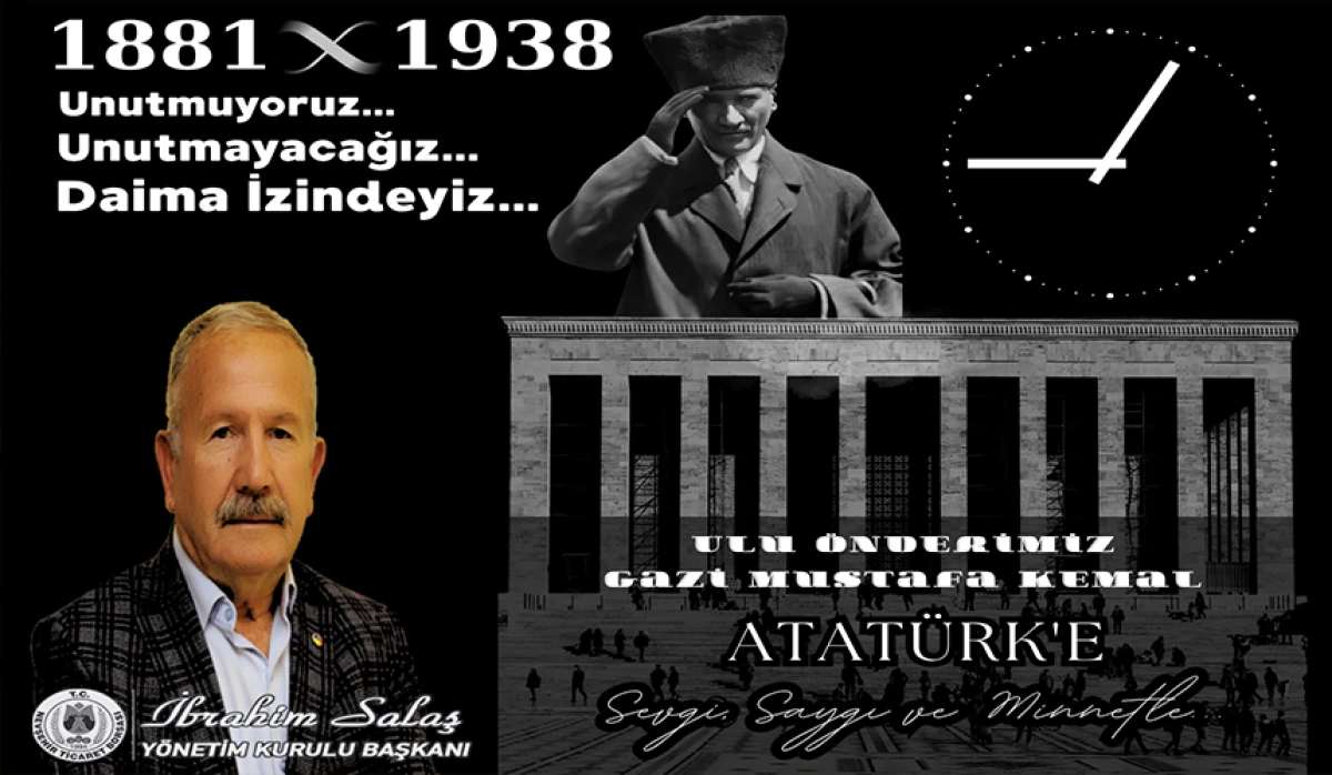 Nevşehir Ticaret Borsası (NTB) Yönetim Kurulu Başkanı İbrahim Salaş, Gazi Mustafa Kemal Atatürk'ün 87. ölüm yıl dönümü nedeniyle bir mesaj yayınladı.