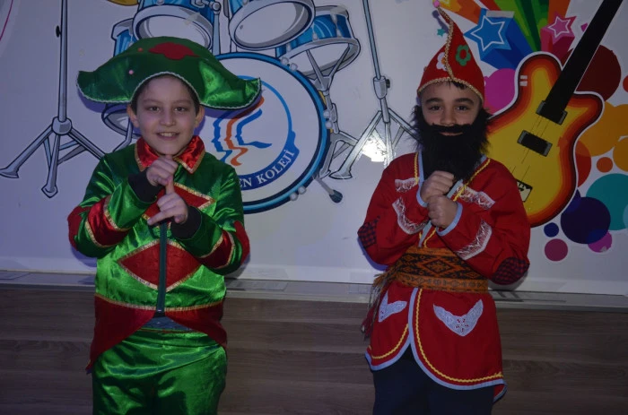 Etkinlikler kapsamında öğrencilerden oluşan davul ve mâni grubu, okul koridorlarını şenlendirdi.